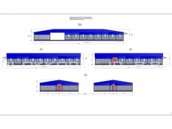 • Наружная отделка стен: профилированный лист, толщина 0,4мм, низ БК-1,7м цвет серый RAL 7035;  верх БК 0,55м – цвет синий  RAL 5012;  изготовленный из высококачественной стали.